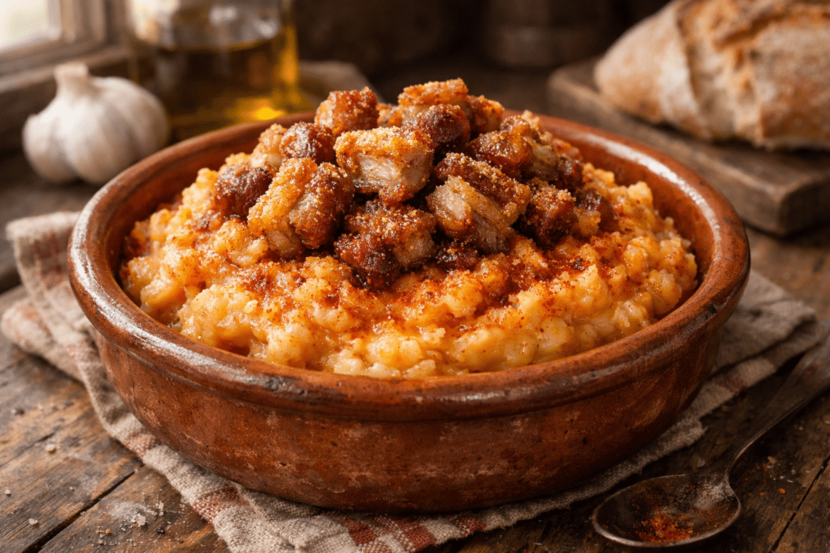 Hoy te voy a enseñar cómo hacer patatas revolconas receta de la abuela paso a paso, con su puré rústico bien ligado, su sofrito de ajo y pimentón y ese remate de panceta o torreznos que las convierte en una auténtica maravilla.