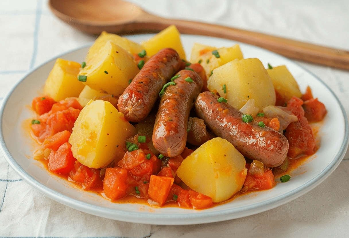 Si hay un plato que huele a cocina de madre, ese es el guiso de salchichas frescas con patatas. Una receta sencilla, contundente y reconfortante. De esas que se cocinan a fuego lento y te calientan el alma. Perfecto para esos días en los que apetece cuchareo del bueno. ¡Vamos al lío que esto está de escándalo!